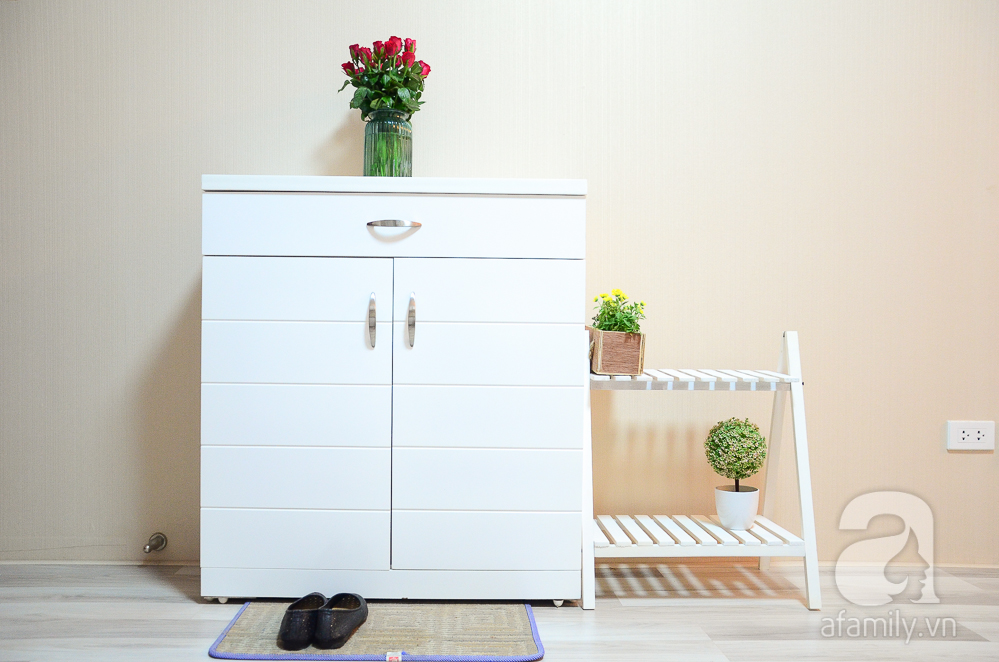 Tủ giày nhỏ nhắn, xinh xắn được đặt trước cửa ra vào.