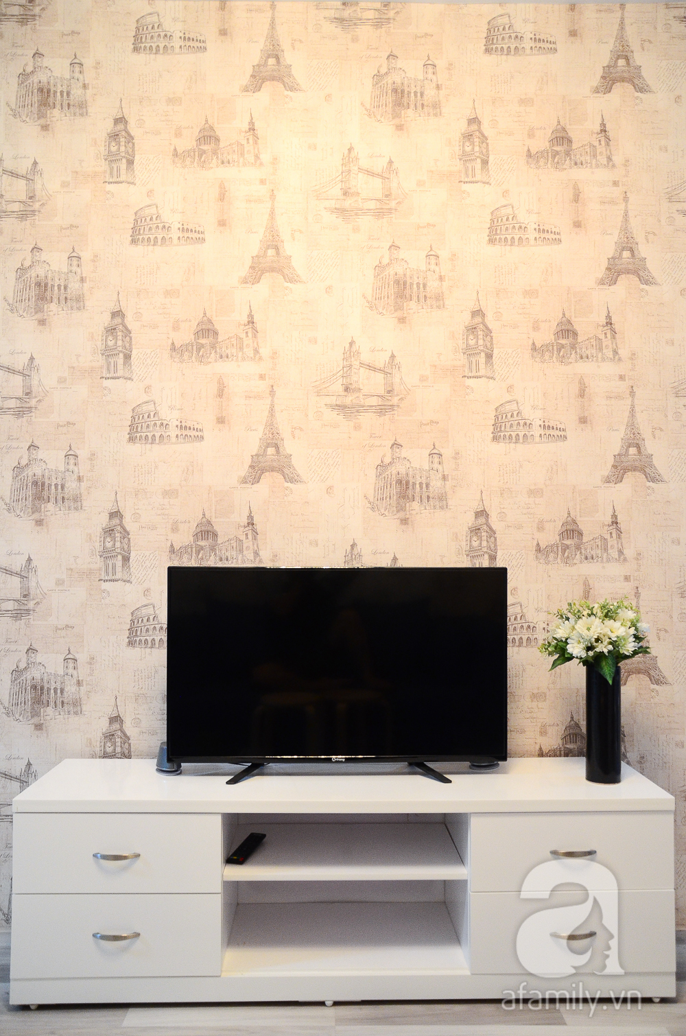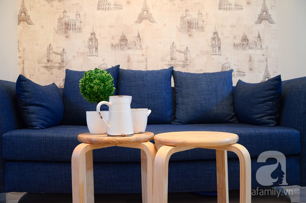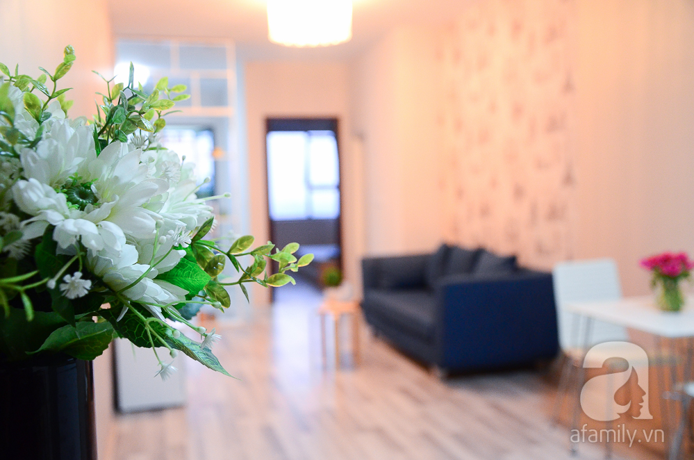Toàn bộ thiết kế và cấu trúc của căn hộ được giữ nguyên bản thiết kế ban đầu, chỉ được xử lý bởi các đồ nội thất phù hợp nên tiết kiệm được khá nhiều chi phí sửa chữa. Đồng thời, để tạo không gian rộng rãi nhất có thể, chủ nhà đã tối giản tuỵệt đối các chi tiết nội thất. Bàn phòng khách được thay thế bằng chiếc ghế tròn nhỏ xinh, vừa có chức năng để cốc tách khi uống nước, vừa để ngồi khi nhà đông khách.