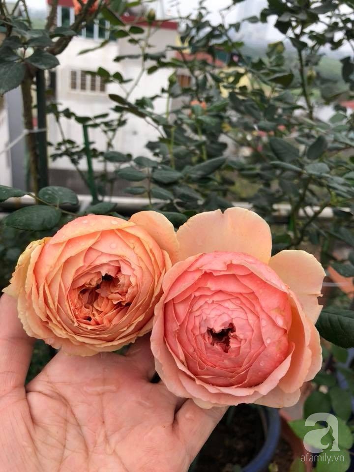 Cũng nhờ sự chịu khó và chăm chỉ ấy, những gốc hồng chị trồng ngày một tươi tốt. Tuy nhiên, sau một thời gian, chị cảm thấy lo lắng về vấn đề an toàn khi mưa to gió lớn sẽ làm hồng bị đổ, gãy hay rơi xuống phía dưới nên chị đã quyết tâm cải tạo khoảng sân thượng 24m2 để chuyên trồng hồng.