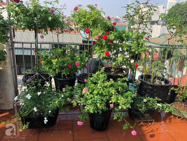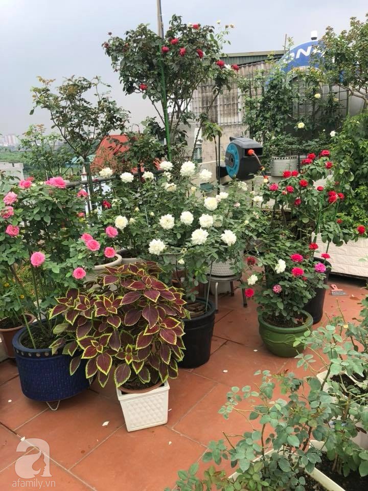 Không gian sân thượng không rộng lắm, chỉ vỏn vẹn 24m2, đôi khi vườn hồng trên cao trở nên chật chội khiến chị phải cho bớt cây nhưng với chị, được chăm hoa, được ngắm những cành hồng nở hoa rực rỡ, tỏa hương thơm mát trên sân thượng luôn khiến chị cảm thấy yêu đời, thấy cuộc sống thêm nhiều cảm hứng và niềm hạnh phúc.
