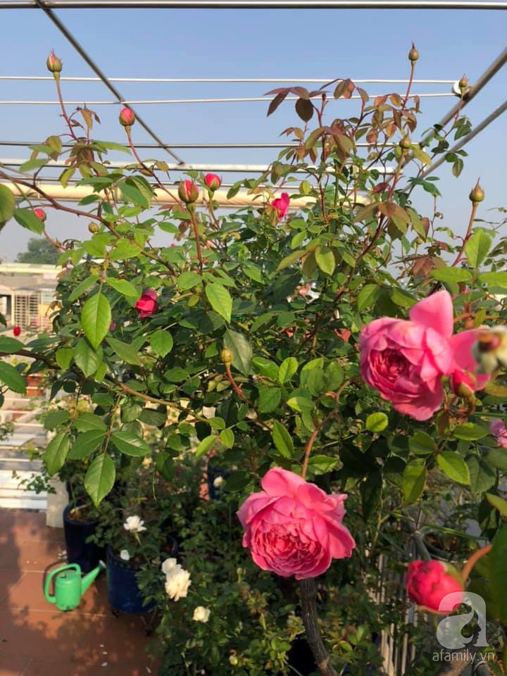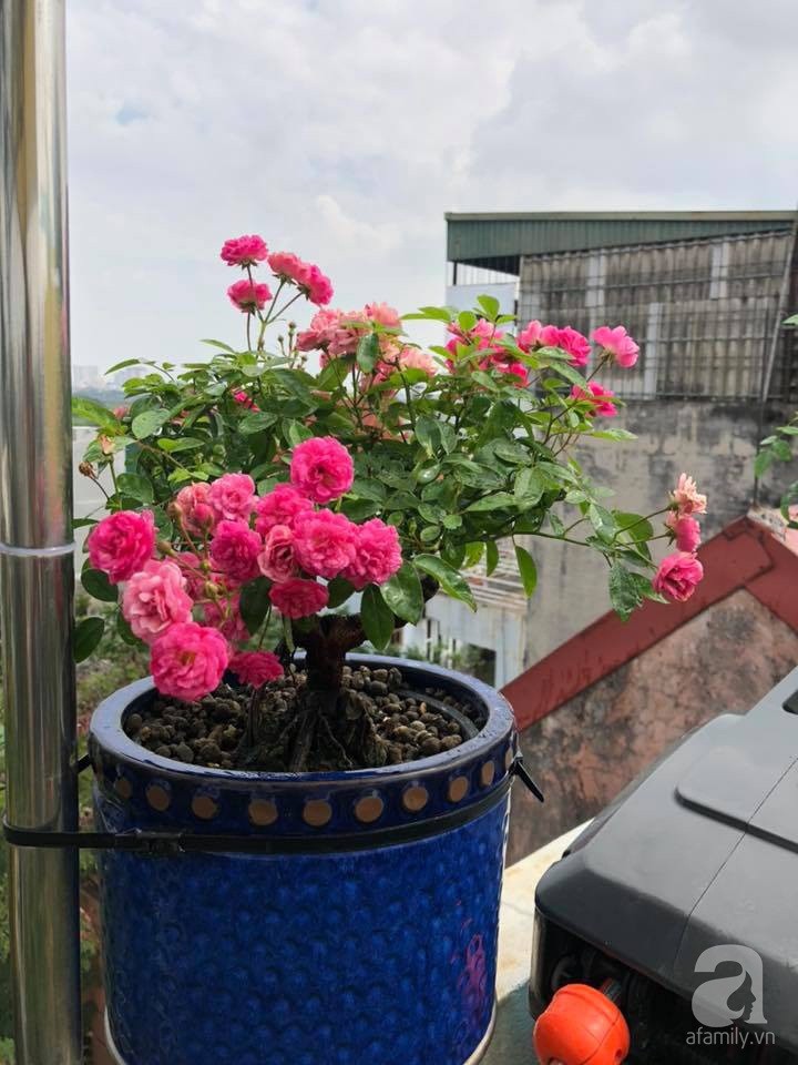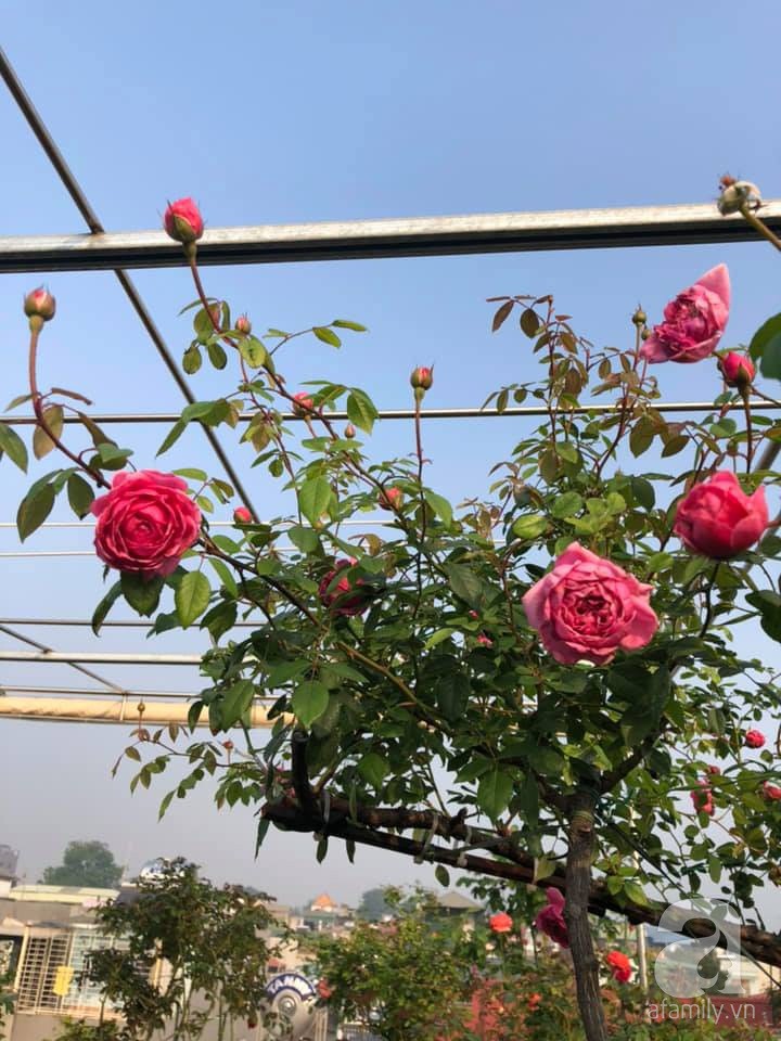 Khoảng sân thượng có diện tích chỉ 24m2 nhưng đẹp duyên dáng và rực rỡ với hoa hồng.
