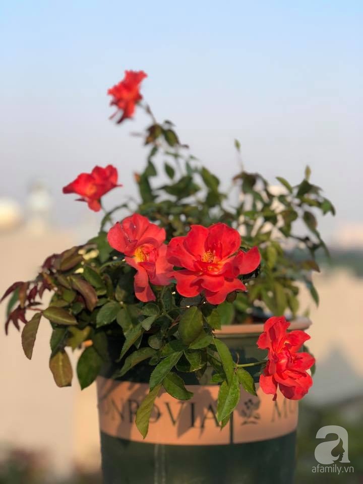 Dù vô cùng bận rộn với guồng quay công việc với cuộc sống ở thủ đô, chị Tố Uyên (Hà Nội) vẫn luôn yêu đời, vui vẻ nhờ dành thời gian chăm sóc vườn hoa hồng trên sân thượng của gia đình mình.